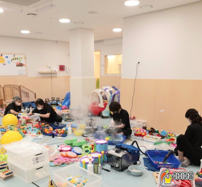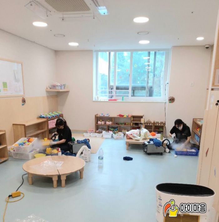 교구장, 책걸상, 교구재, 장난감, 카페트등을 스팀세척살균소독하였습니다.