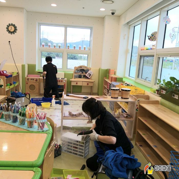 LG이노텍 어린이집의 교구재,교구장,책걸상,장난감등 교실전체를 스팀세척살균소독하였습니다.