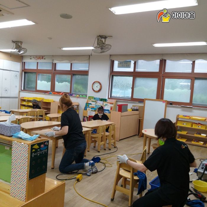 석우초병설유치원의 교구장,교구재,책걸상,장난감,창틀등 교실전체를 세척살균소독청소 하였습니다.