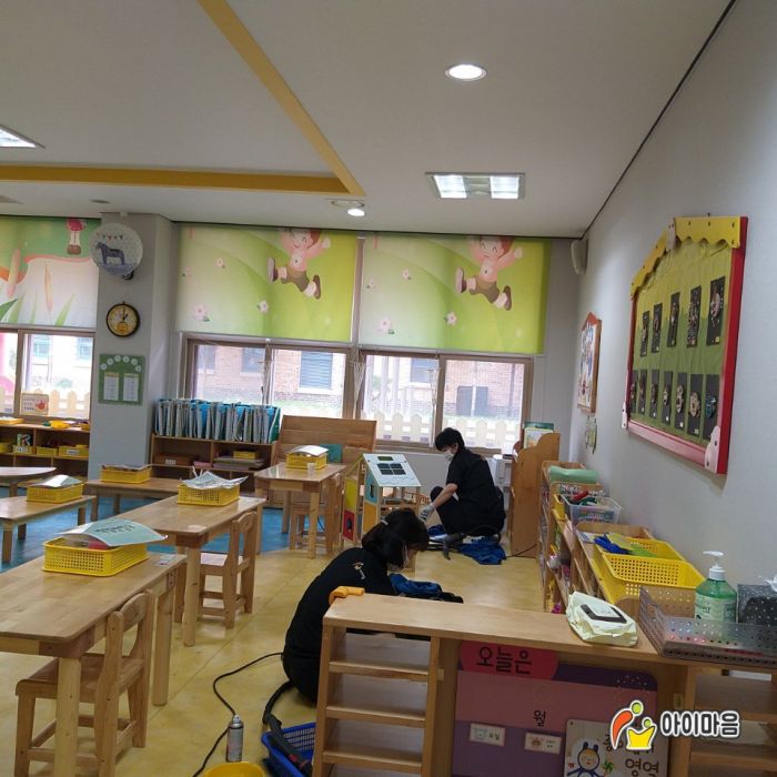 오산에 위치한 광성초병설유치원의 교구장,책걸상,교구재,장난감등을 스팀세첵살균소독하였습니다.
