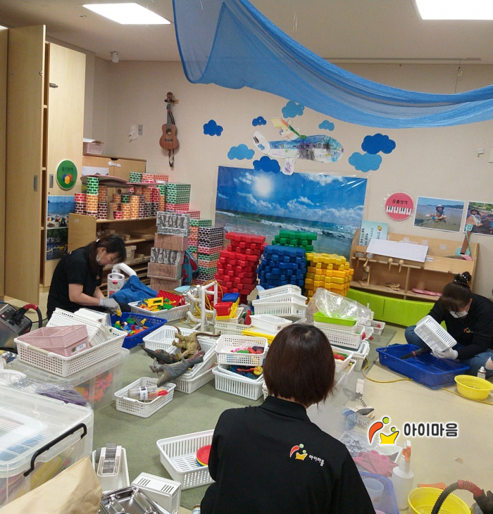 김앤장 어린이집 플라스틱 장난감을 스팀세척살균소독 하였습니다.