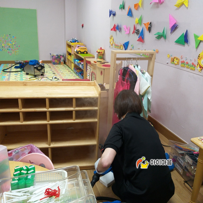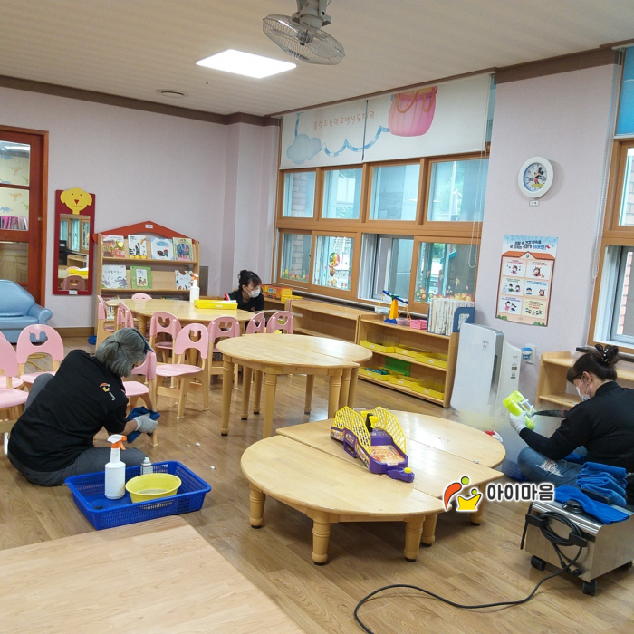 2실 책걸상 및 교구장, 교구재를 스팀세척살균소독 하였습니다.