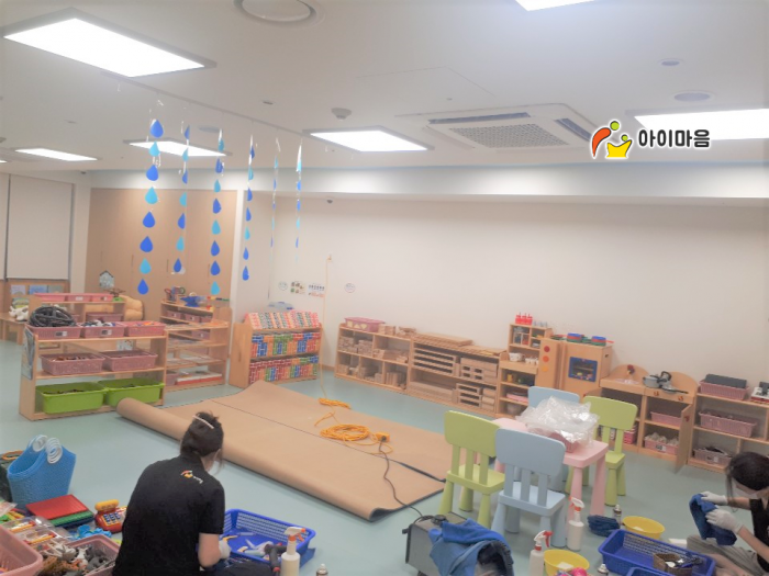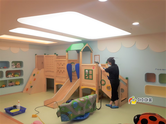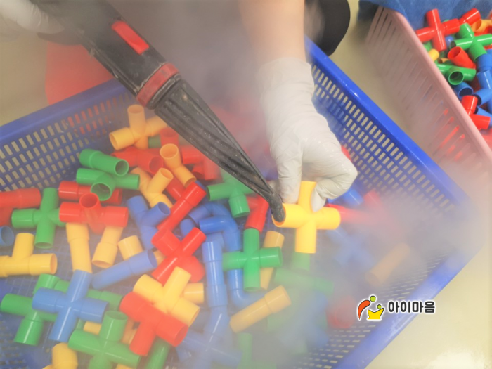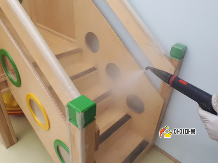 HP어린이집 책걸상 및 교구장, 교구재를 스팀세척살균소독 하였습니다.