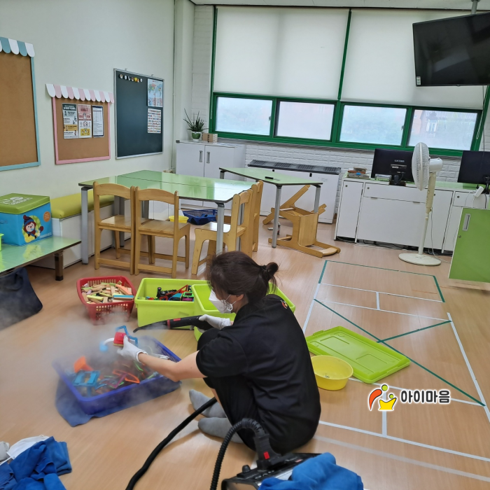 은지초돌봄실 책걸상 및 교구재를 스팀세척살균소독 하였습니다.
