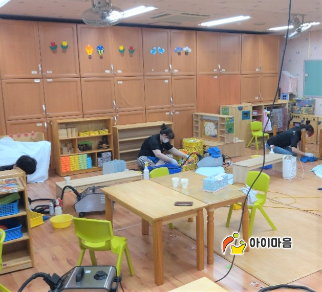 덕장초병설유치원 책걸상과 교구장, 교구재, 창틀 등을 스팀세척살균소독 하였습니다.