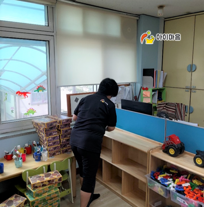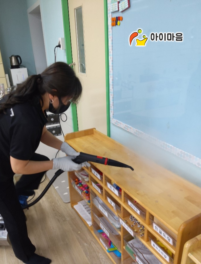 사창초병설유치원 책걸상 및 교구장, 교구재를 스팀세척살균소독 하고