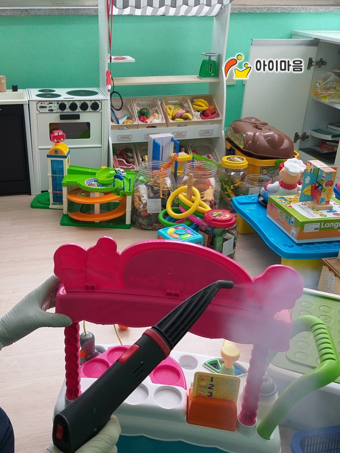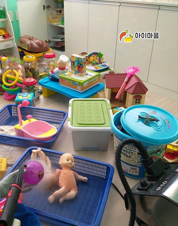언어발달실 장난감을 스팀세척살균소독 하였습니다.