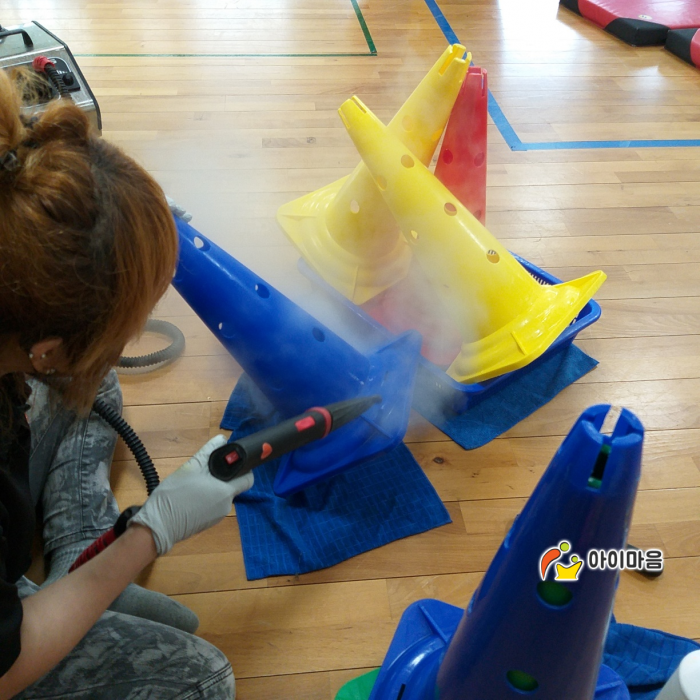 체육실 교구와, 매트등을 스팀세척살균소독 하였습니다.
