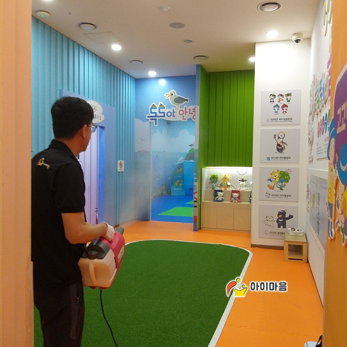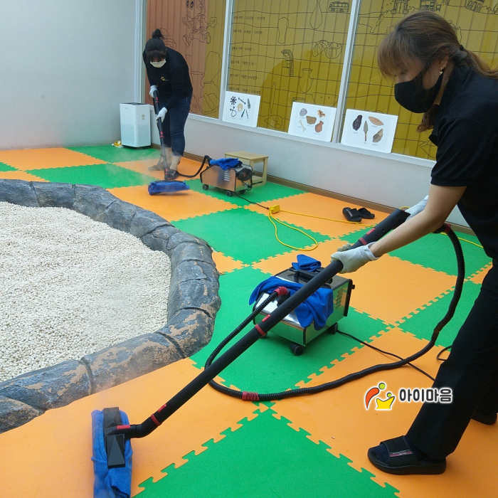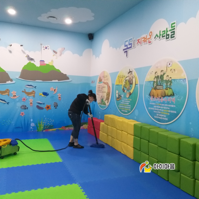 광교박물관 어린이체험실 편백나무칩과 레자매트, 카펫, 바닥매트 등을