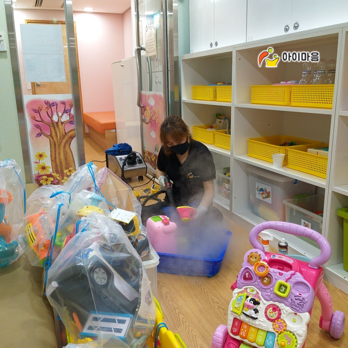 오후엔 2호점 장난감을 스팀세척살균소독 하였습니다.