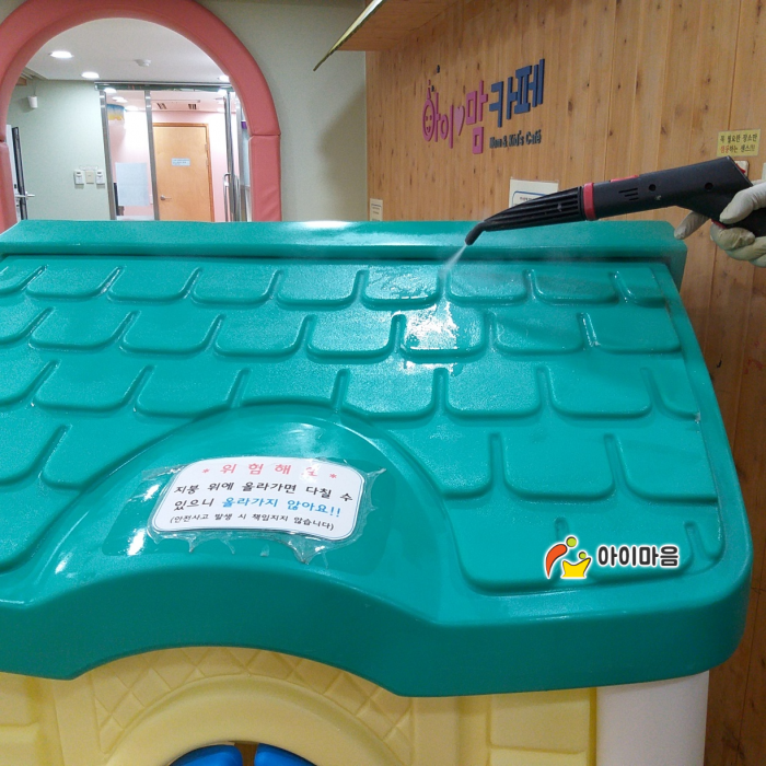오전에 오산 아이러브맘카페1호점 장난감과 시설물을 스팀세척한 후