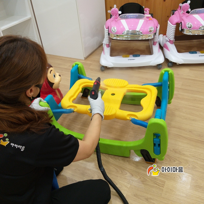 오산 아이러브맘카페 3호점 장난감을 스팀세척살균소독 하였습니다.
