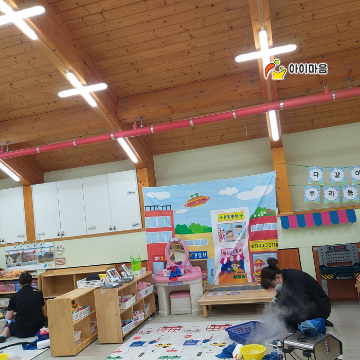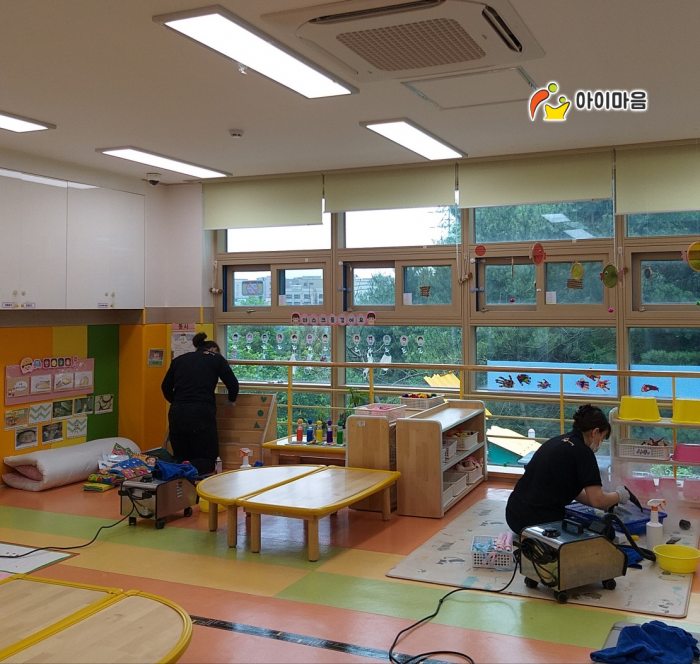 책걸상 및 교구장, 교구재를 스팀세척살균소독 하였습니다.