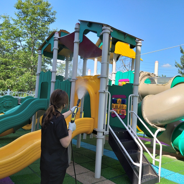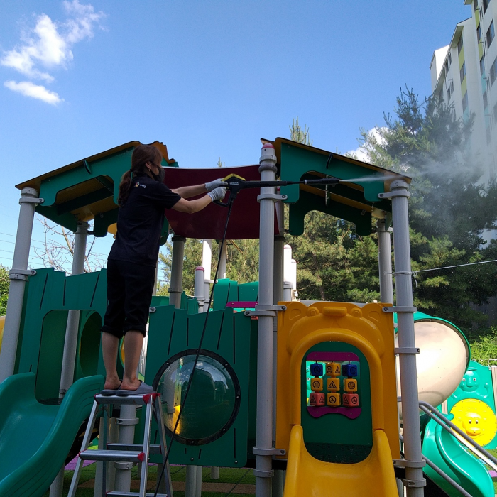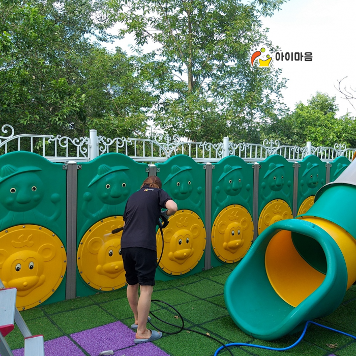 어린이집 야외놀이터 2곳도 세척하였습니다.