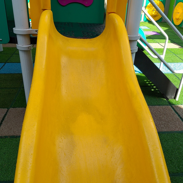 먼지와 빗물자국등으로 얼룩져있던 미끄럼틀과