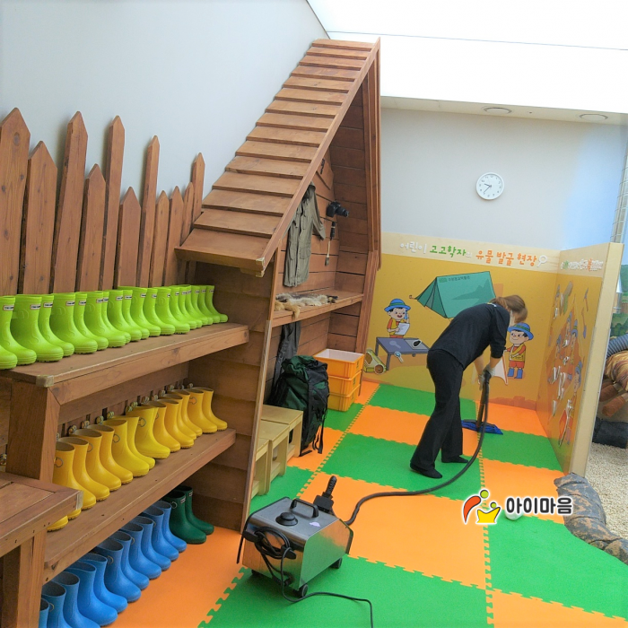 광교박물관 어린이체험실 편백나무칩과 시설물을 스팀세척살균소독 하였습니다.