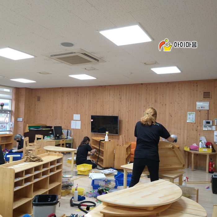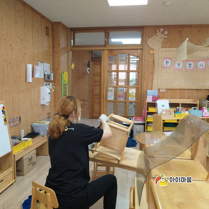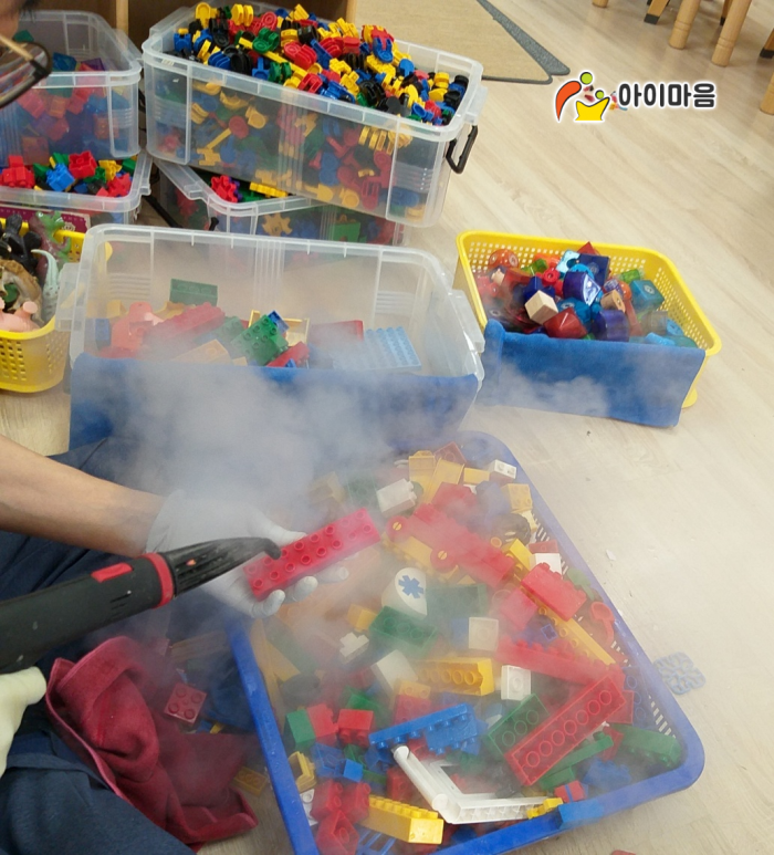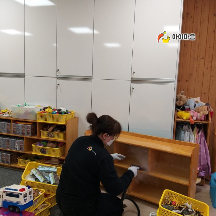 어제에 이어 오늘도 산운유치원 책걸상 및 교구장, 교구재등을 스팀세척소독하였습니다.
