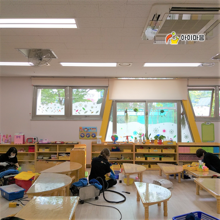 오늘은 인천고잔초병설유치원 책걸상 및 교구장, 교구재, 창틀 등을