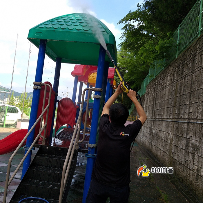 화창초병설유치원 야외놀이터 세척을 마무리하였습니다.