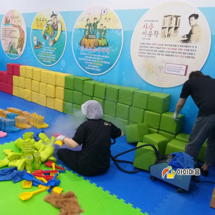 광교박물관 편백나무칩과 체험실을 스팀세척살균소독 하였습니다.