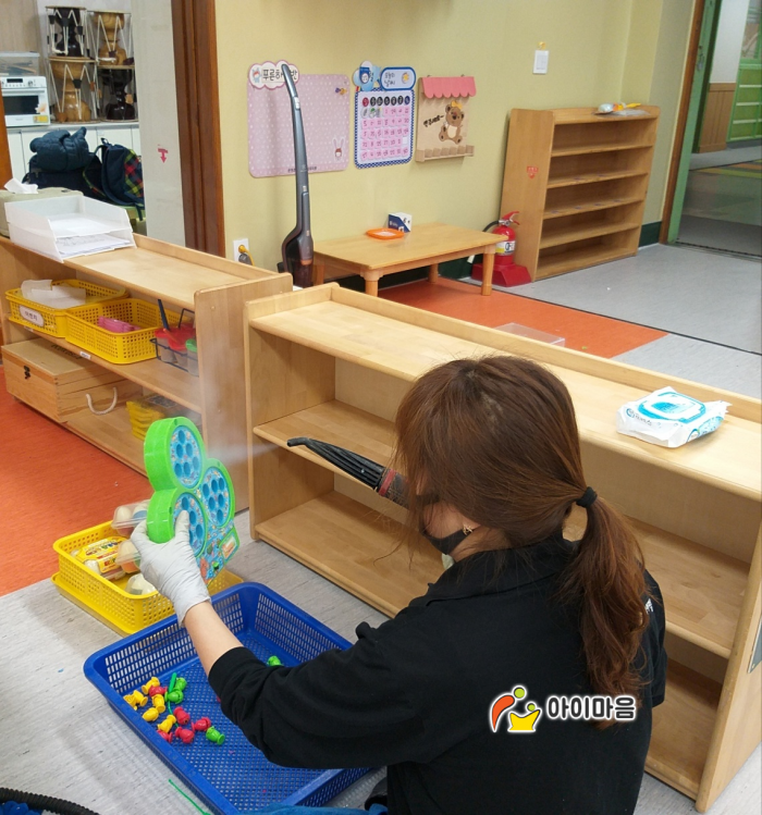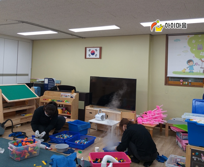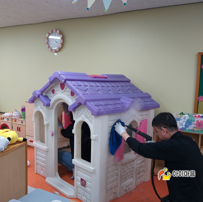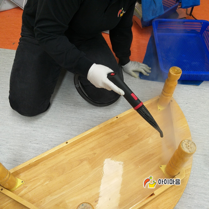 운천초병설유치원 책걸상 및 교구장, 교구재등을 스팀세척살균소독 하였습니다.