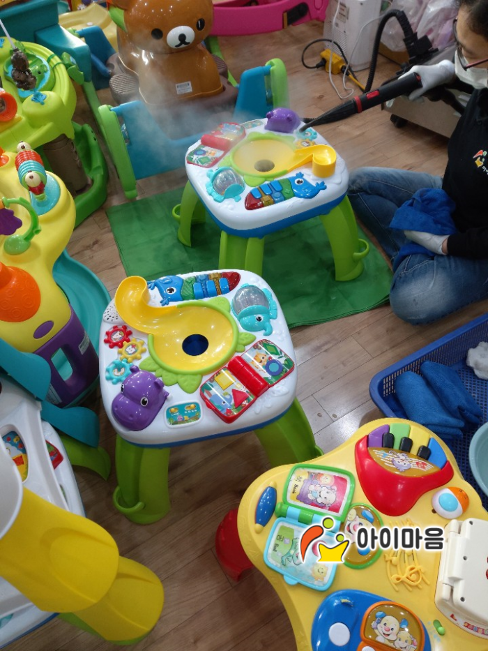 오늘은 승용완구와 중 대형 장난감 위주로 소독을 하였습니다.