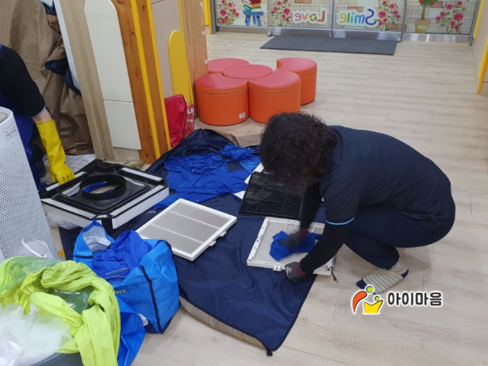 해군2함대어린이집 에어컨필터를 깨끗하게 세척작업 하였습니다.