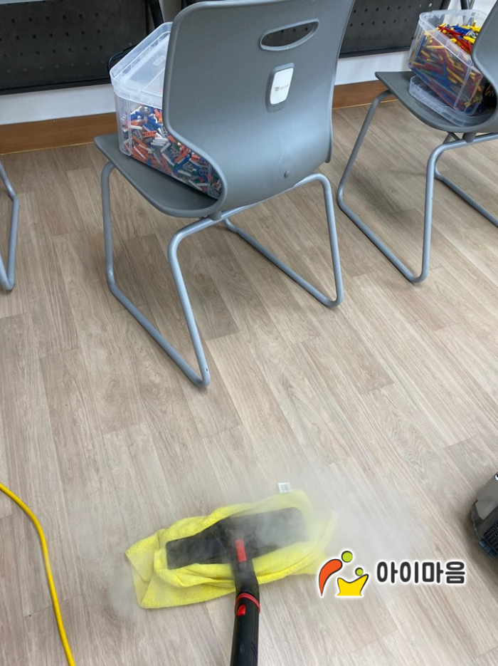 오후엔 지장초 돌봄실 책걸상과 교구재 등을 스팀세척살균소독 하였습니다.