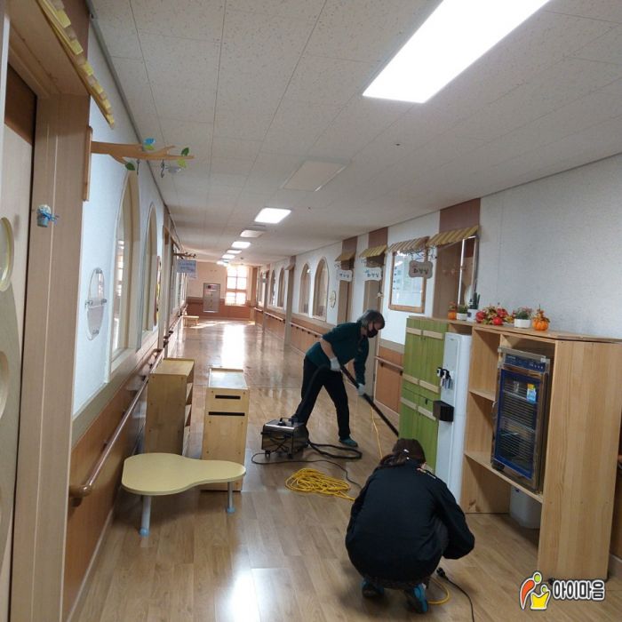 봄누리유치원의 복도,계단등을 스팀,세척,살균소독하였습니다.