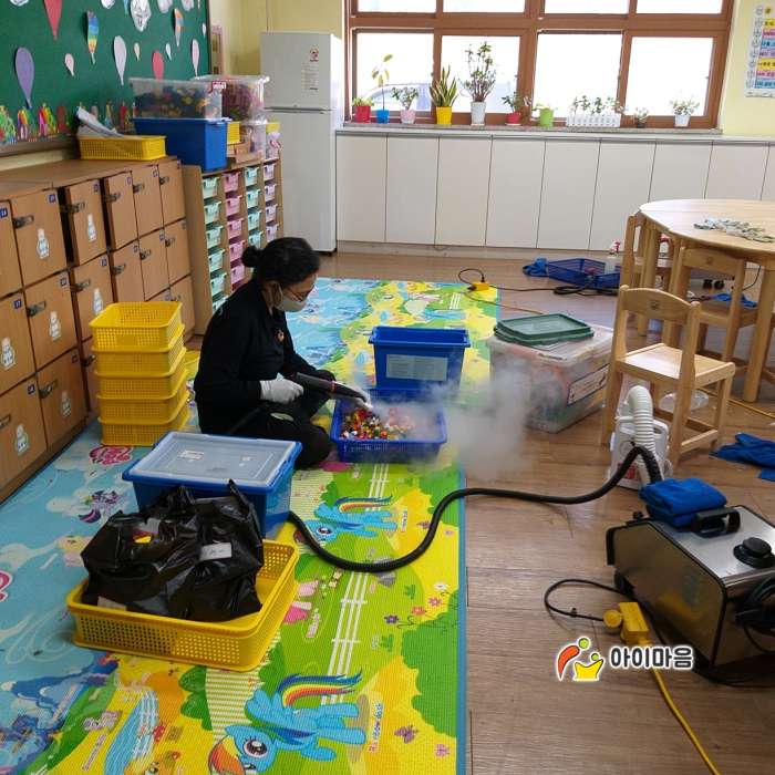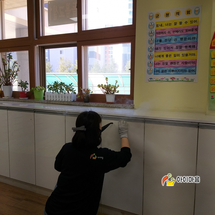 가수초 돌봄교실 책걸상, 교구장, 교구재, 창틀 등을 스팀세척살균소독 하였습니다.