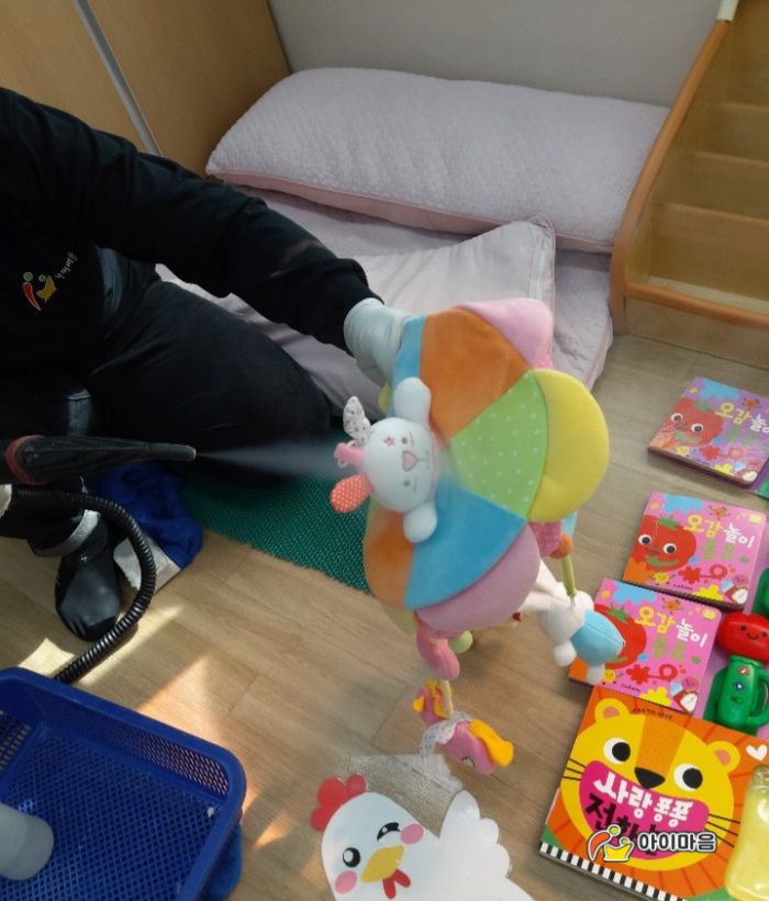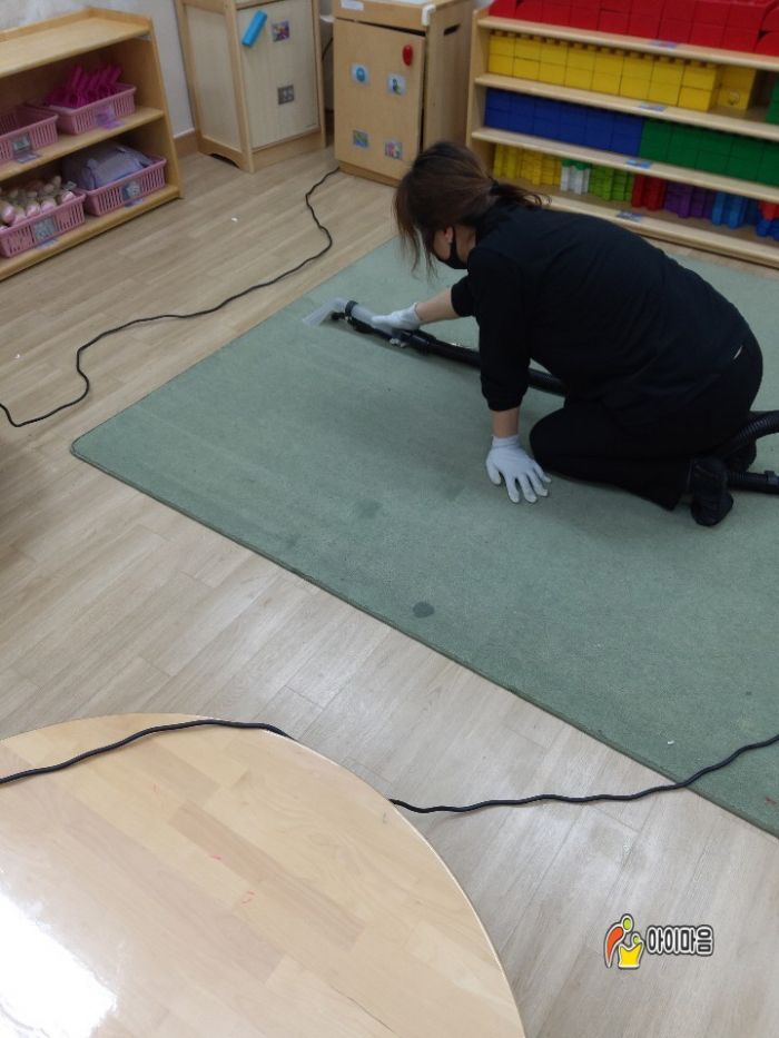 중부해양경찰청어린이집의 책걸상,교구장,교구재,카페트등을 스팀세척살균소독하였습니다.