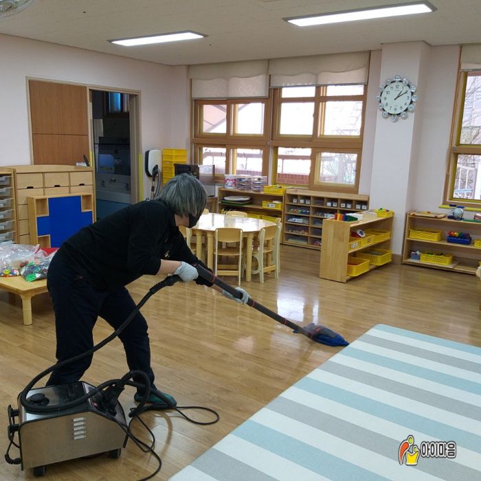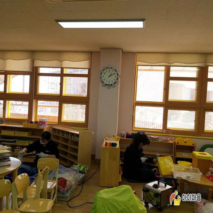 봄누리유치원의 책걸상,교구장,교구재,장난감등를 스팀세척살균소독하였습니다.
