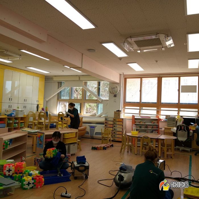 용인서원초병설유치원의 책걸상,교구장,교구재,바닥등을 스팀세척살균소독하였습니다.