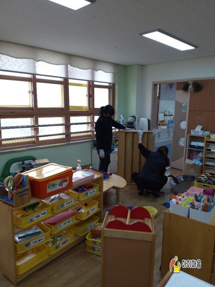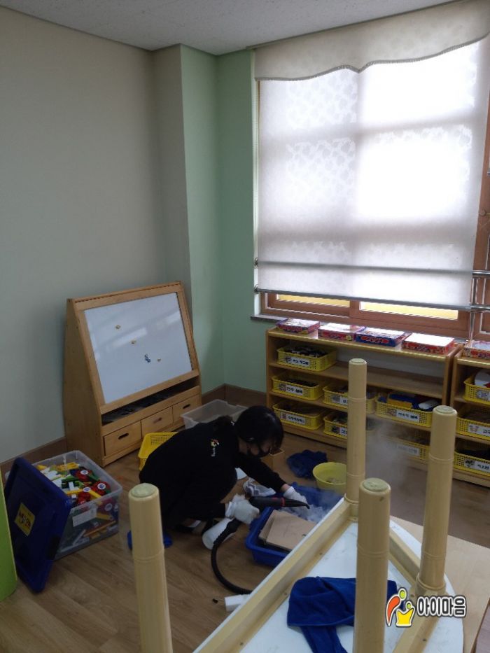 봄누리유치원의 책걸상,교구장,교구재,장난감,바닥등을 스팀세척살균소독하였습니다.