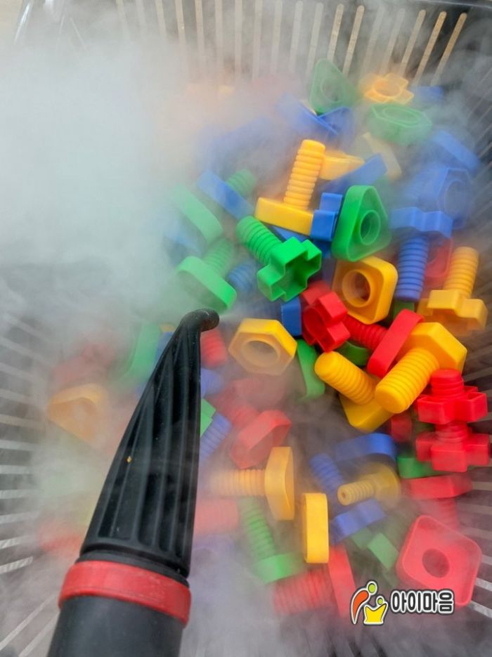 아이들의 손때묻은 장난감이나 교구재를 170도 고온스팀으로 틈사이사이 먼지를 제거해주어 세척과 살균을 동시에 해줍니다.