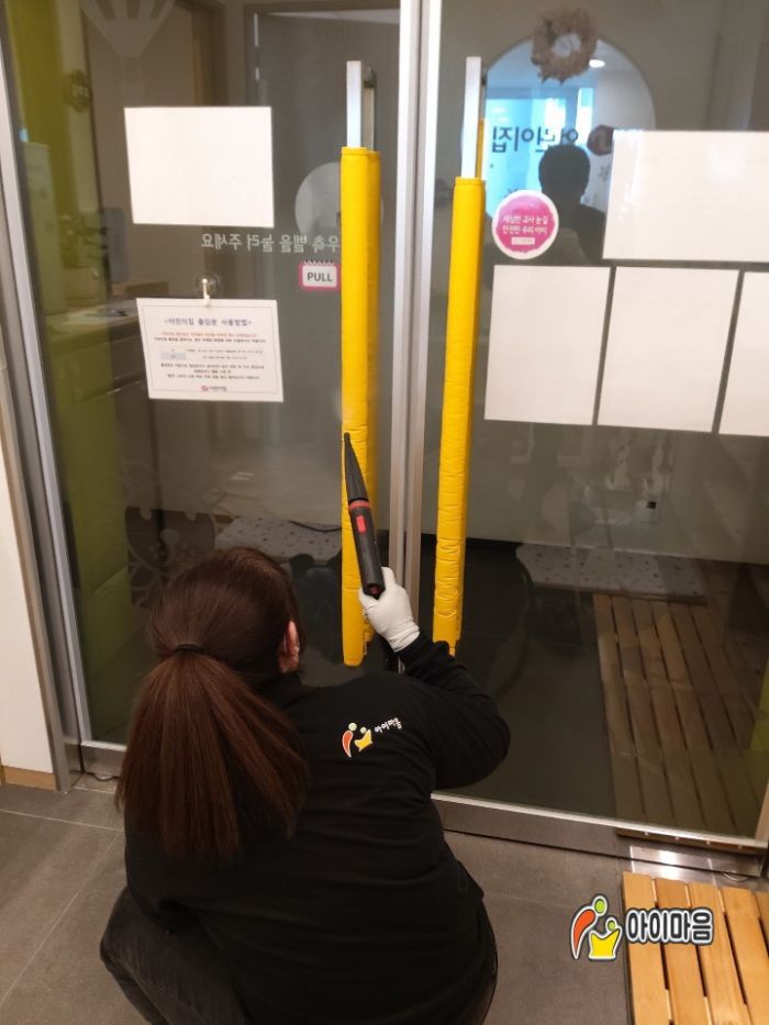 아이들이 드나드는 문의 손잡이와 문틈새도 말끔하게 소독해드렸습니다.
