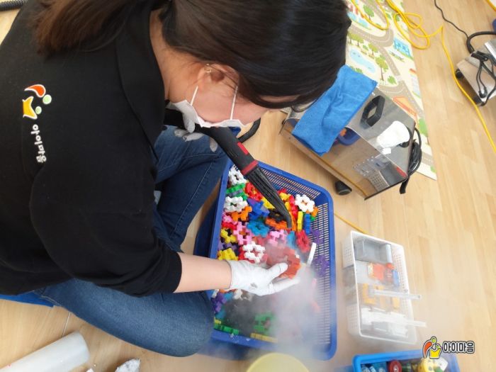백마초병설유치원의 책걸상,교구장,교구재,장난감,바닥을 스팀세척살균소독하였습니다.