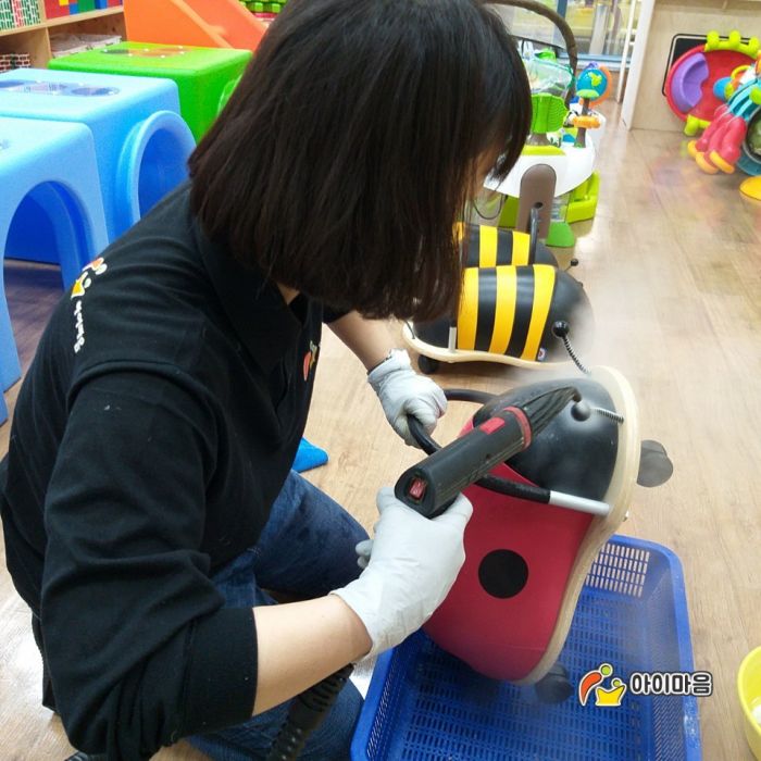 의왕육아종합지원센터의 아이사랑장난감도서관 오전점의 장난감과교구재를 스팀세척살균소독하였습니다.