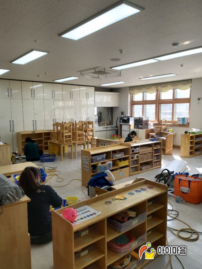 송신초병설유치원의 책걸상,교구장,교구재,장난감,바닥등 교실전체를 스팀세척살균소독하였습니다.