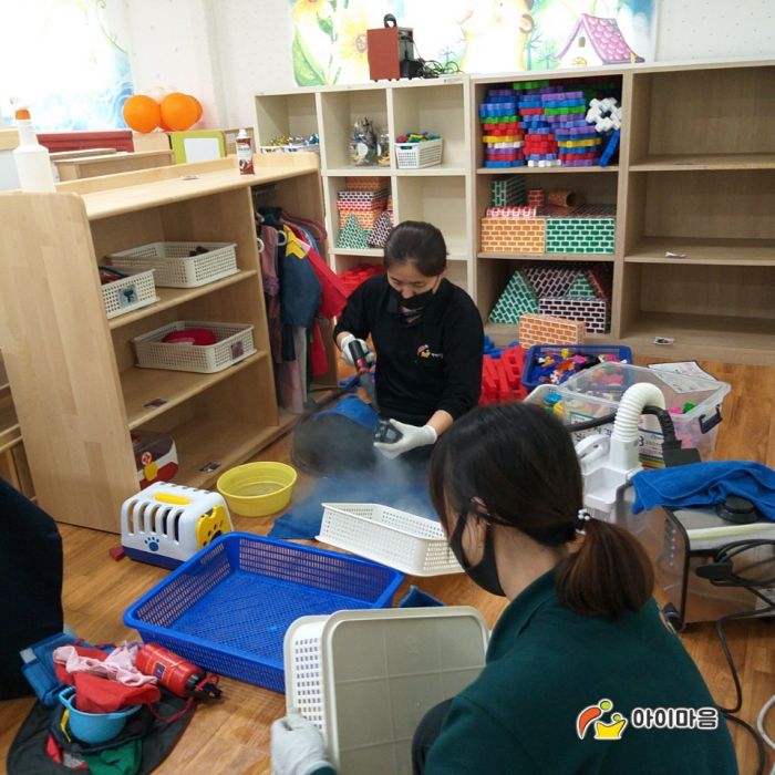 제일초병설유치원의 책걸상,교구장,교구재,장난감,바닥등 교실전체를 스팀세척살균소독하였습니다.