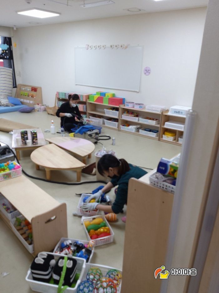 해군바다마을어린이집의 교구장,교구재,장난감,카페트등 교실전체의 스팀세척살균소독하였습니다.