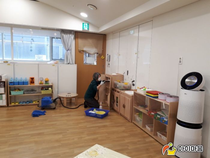 kist숲속어린이집의 책걸상,교구장,교구재,장난감,카페트를 스팀세척살균소독하였습니다.