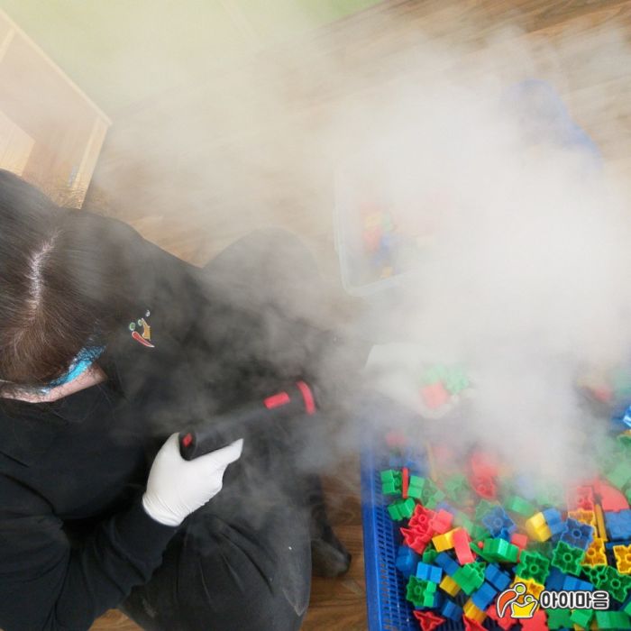 오산고현초병설유치원의 장난감,교구장,교구재 책걸상등 교실전체 스팀세척살균소독하였습니다.