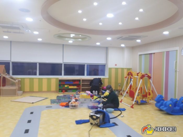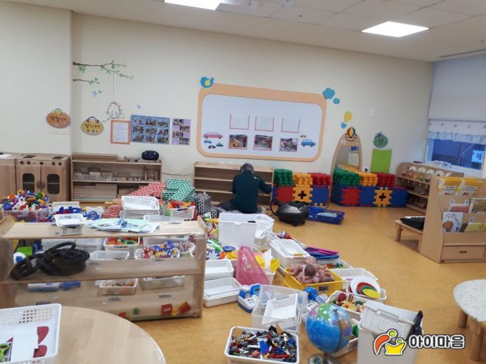 한화테크원어린이집의 책걸상,교구장과 교구재를 스팀세척살균소독하였습니다.