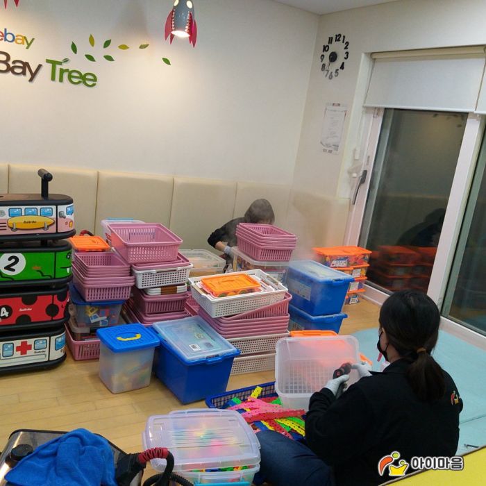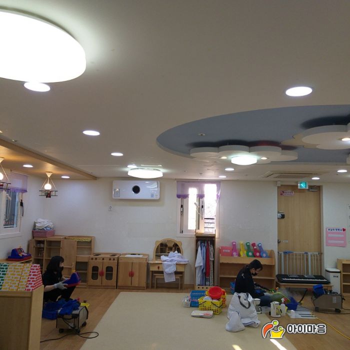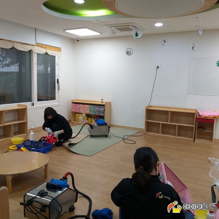 이베이베이트리직장어린이집의 교실전체의 책걸상,교구장,교구재,카펫을 스팀세척살균소독하였습니다.