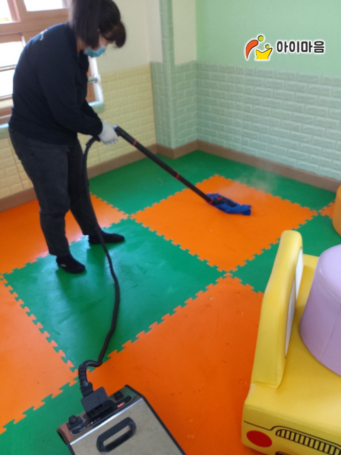 봄누리유치원 놀이체육실과 교실의 책걸상,교구장,교구재,장난감과 유희실을 스팀세척살균소독 하였습니다.