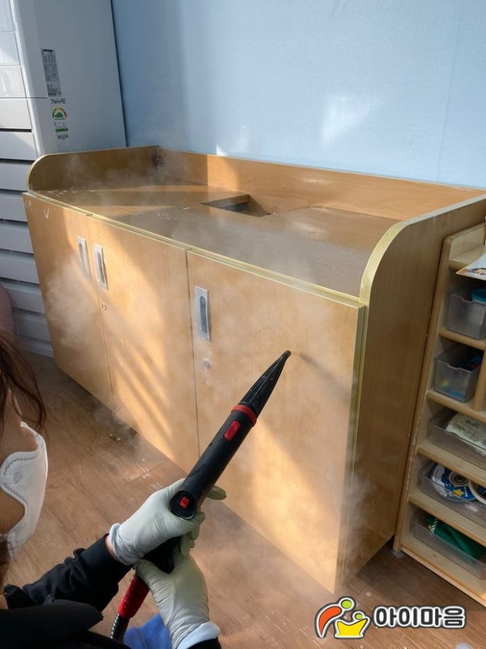 대남초병설유치원의 교실 책걸상,교구장,교구재를 스팀세척살균소독하였습니다.