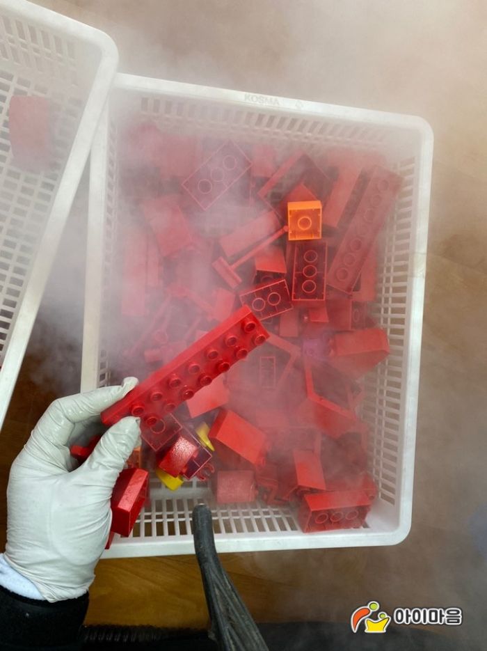 용이초병설유치원의 교실책걸상과 교구장, 교구재의 스티커제거및 스팀세척살균소독하였습니다.