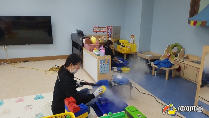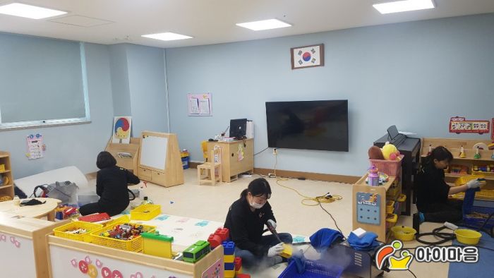 용죽초병설유치원의 교실책걸상,교구장과 교구재의 스티커제거및 스팀세척살균소독을 실시하였습니다.