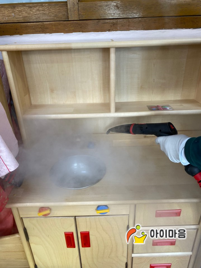 창신초병설유치원 책걸사,교구장 교구재를 스팀세척살균소독 하였습니다.